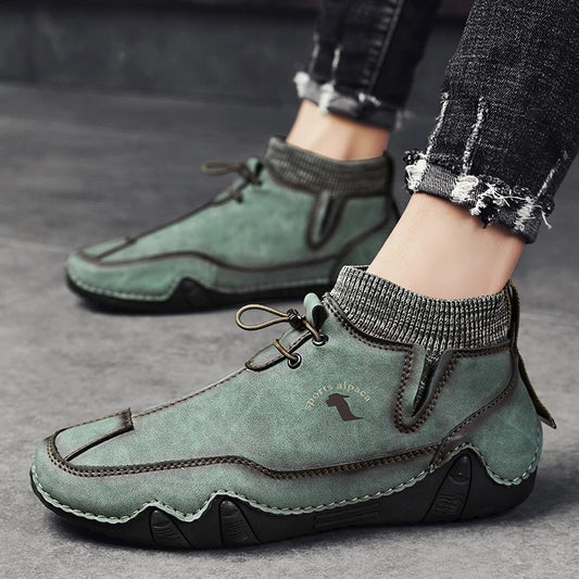 Groovywish Herren Stiefeletten Plüsch Leder Orthopädische Wanderschuhe